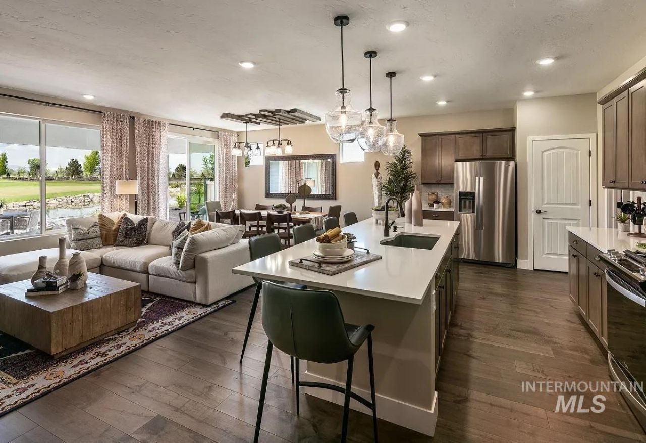 Experience resort-style living in this brand-new Shea Homes Affirm floor plan, located in the highly desirable Trilogy Valor 55+ gated community in Kuna. This thoughtfully designed single-level home features an open-concept layout ideal for both everyday living and entertaining. The spacious kitchen offers a large island, modern finishes, and seamless flow into the great room. A private primary suite includes a spa-inspired bath and walk-in closet, while a guest bedroom and flexible den provide space for visitors, hobbies, or a home office. Fully landscaped yard with a fence and gate in the rear yard, offering privacy and ease of maintenance. Transition seamlessly to the outdoors through expansive multi-sliding glass doors that open to a private covered patio. Home features a smart home package with Ring doorbell, Alexa Echo, and WiFi booster, plus Shea Homes quality craftsmanship, energy-efficient construction, and modern finishes. Trilogy Valor offers exclusive access to the Treasure Valley Social Club with resort-style amenities including a fitness center, indoor and outdoor pools, pickleball, walking paths, and a full-service restaurant and bar, just minutes from the 36-hole Falcon Crest Golf Course. Convenient access to Boise, Meridian, and outdoor recreation. BTVAI *Photos Similar