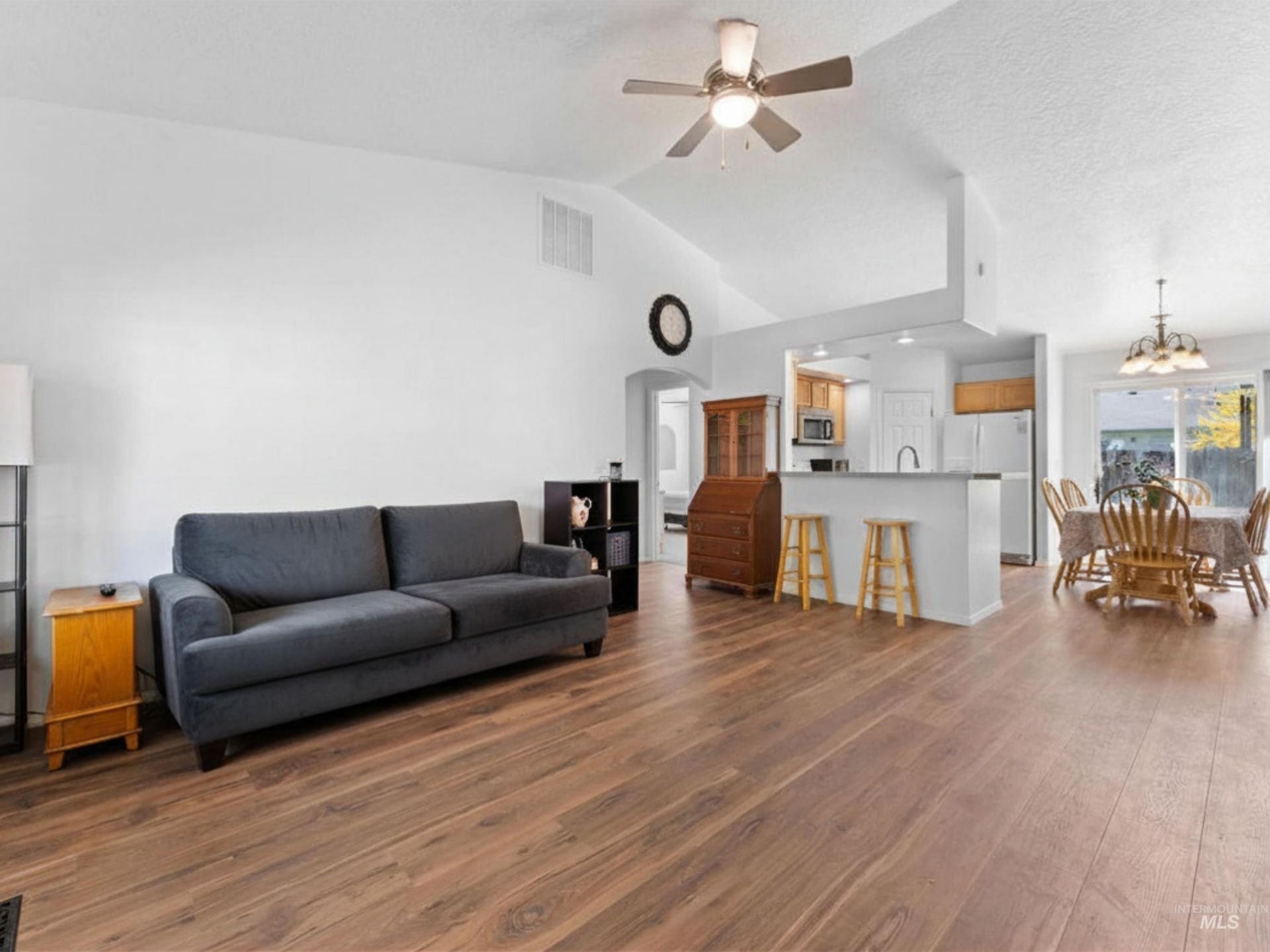 Single-level home in a well-maintained neighborhood. Located just minutes from Downtown, Indian Creek Plaza, College of Idaho, NNU, multiple golf courses and wineries, Lake Lowell, and a wide variety of dining & shopping options. Offering 4 bedrooms, 2 baths, plus a Bonus Room. Enjoy the charming covered front porch where the north-facing orientation helps keep the homes entry cooler and more shaded. Inside, vaulted ceilings enhance the open layout & durable LVP flooring flows throughout the main living area. The kitchen features an eat-in breakfast bar, corner pantry, and spacious dining area. The split-bedroom design provides added privacy for the primary suite, complete with an en-suite bath and walk-in closet. Step outside to a generously sized backyard with side gate access, perfect for RV/boat parking. The included shed is perfect to store your garden tool or just extra storage. New roof in 2026!