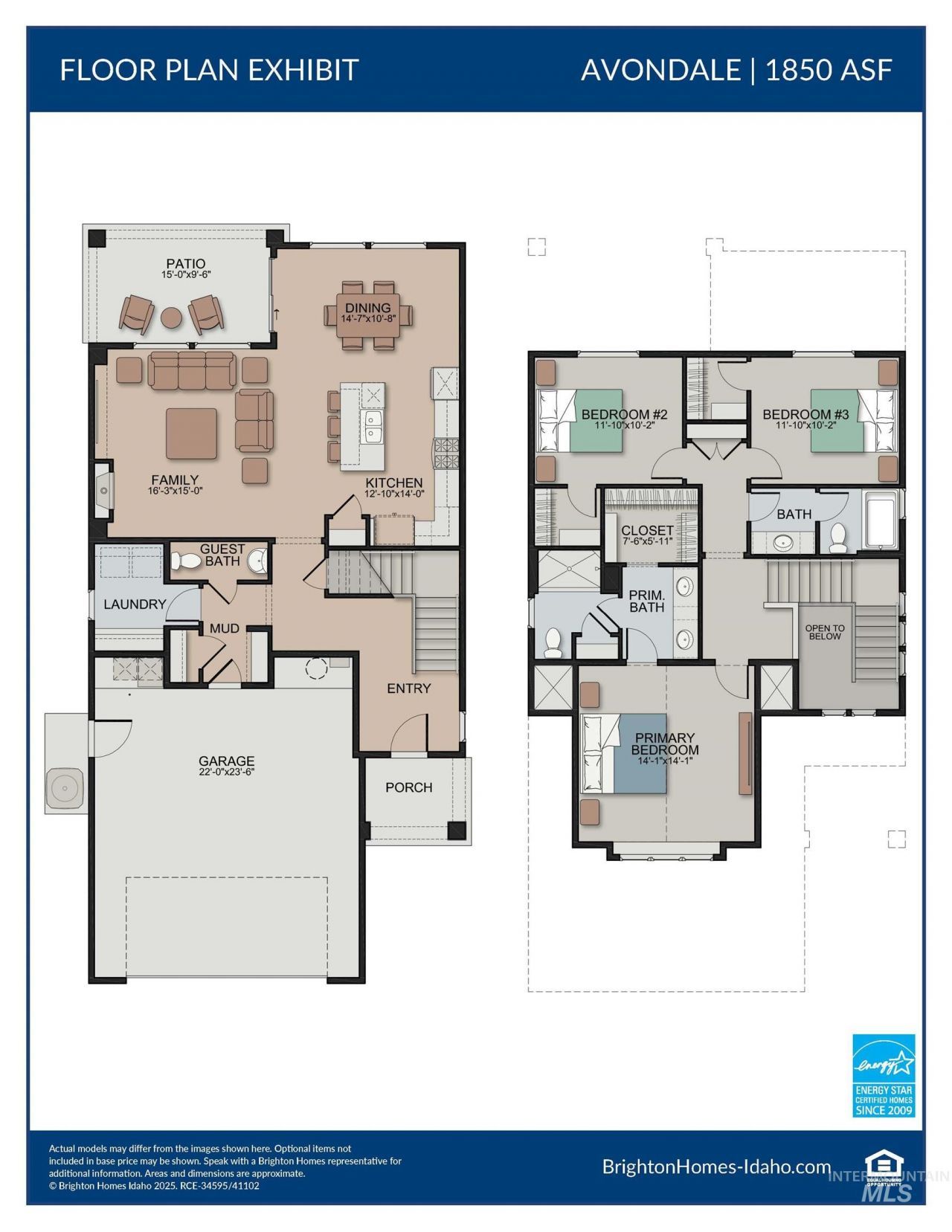 Welcome to the AVONDALE by Brighton, a thoughtfully designed two-story home offering comfort, style, and easy living in Arbor, one of Nampas most desirable master-planned communities. Step inside to a beautiful entryway with an open staircase that creates a bright, inviting first impression. The main level features an open-concept layout where the kitchen, dining, and family room connect seamlessly - perfect for everyday living and entertaining. A covered patio extends your space outdoors, while a mudroom, laundry area, and guest bath add convenient functionality. Upstairs, the private primary suite is set apart from the secondary bedrooms and features a vaulted ceiling, dual vanities, and a large walk-in closet. Two additional bedrooms and a full bath complete the upper level. Enjoy Arbors tree-lined paths, green spaces, pools, tot lots, and clubhouse - all just minutes from The Treasure Valley Marketplace. You have quick access to shopping, dining, and medical services. I-84 and Hwy 20/26 are close by for easy commuting to North Meridian or Boise. When youre ready for some adventure, visit Lake Lowell for fishing and water sports, or explore the local wineries, scenic backroads, and beautiful countryside of Canyon County. Photos are similar and depict the floor plan only. Visit our model home in Arbor Monday - Saturday 11:00 - 5:00 and on Sundays 1:00 - 5:00.