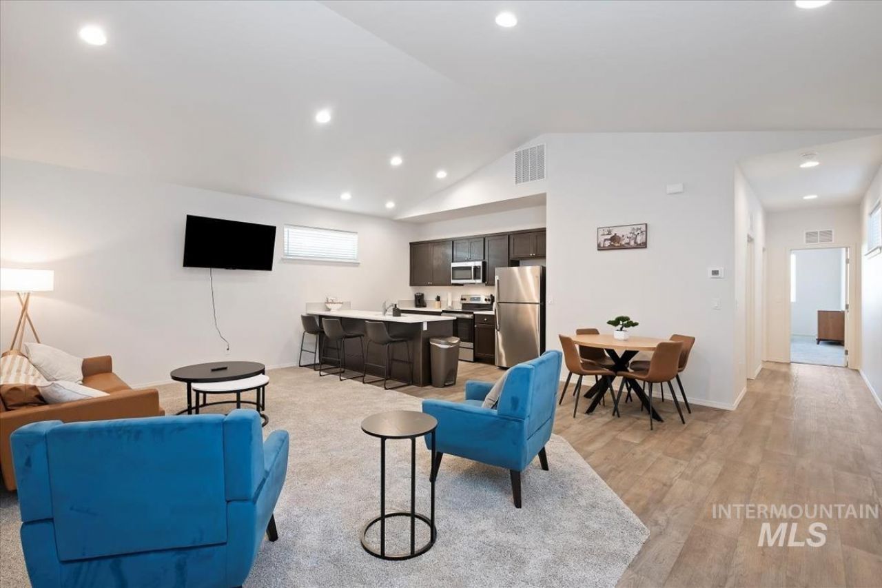 Up to $10k Seller Incentive with preferred Lender. Call for Details. Welcome to this charming 2 bedroom, 2 bathroom home with a 1-car garage, ideally located near Mountain Home Air Force Base. Each bedroom has its own private bathroom, offering comfort and convenience for roommates, guests, or family. Open living area , and the kitchen features plenty of counter space with refrigerator, washer, and dryer all included. Enjoy the low-maintenance yard and secure parking in the attached garage. Easy access to the freeway. A great opportunity for first-time buyers, downsizers, investors or those stationed at the base.