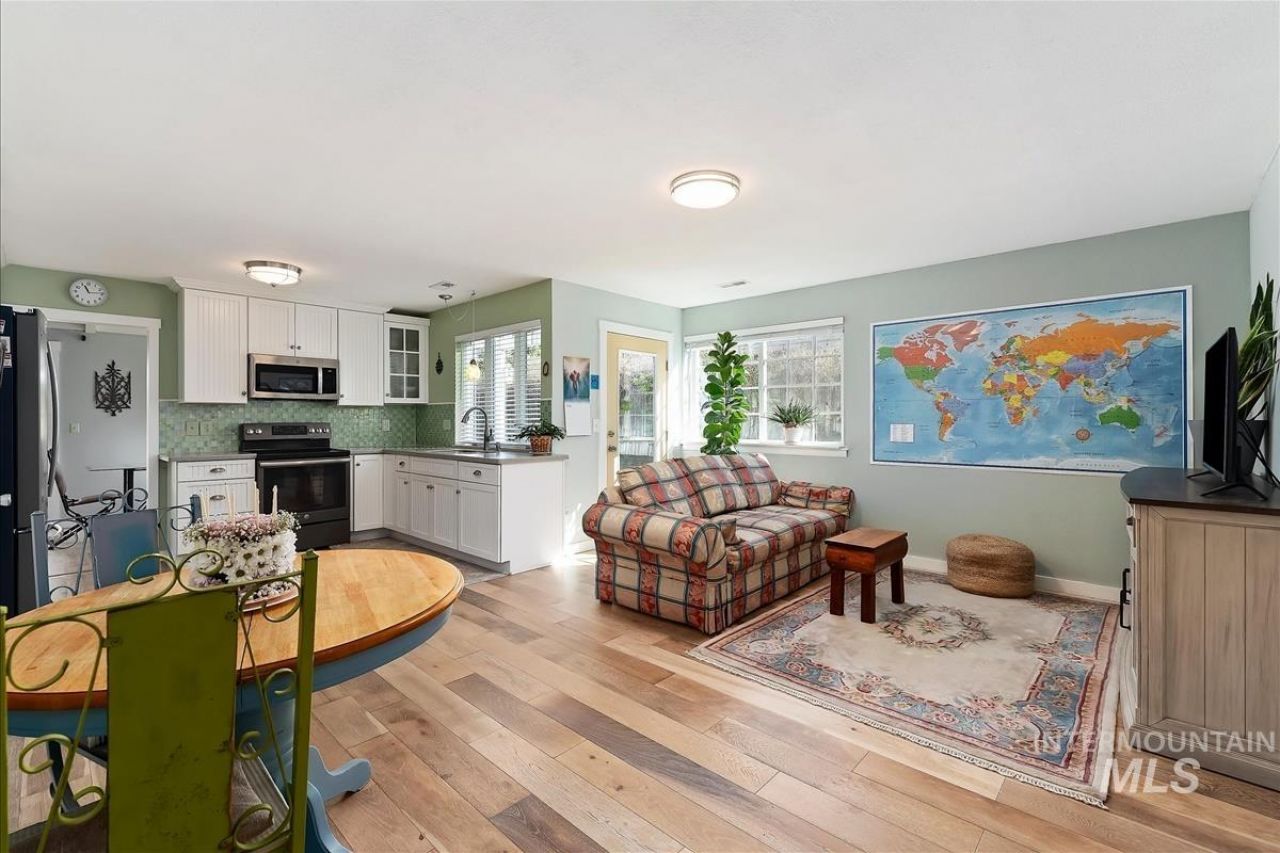 Adorable beach style cottage complete with gorgeous vaulted ceilings and original ship lap. Tastefully updated with tiled bathroom floors and engineered wood floors throughout the home. Charming living areas with many adorable nooks. Driveway was recently updated with brick pavers that tastefully enhance this home. Walking distance to Eagle town center and restaurants and shopping. House is located on a cul de sac which provides a quiet lifestyle away from hustle and bustle. Mature landscaping including prolific grapes which grow right off the veranda for easy picking. Lots of garden space. AC/Furnace and water heater replaced in 2021. Heres a chance to own a nice home in desirable Eagle, Idaho for an attainable price.